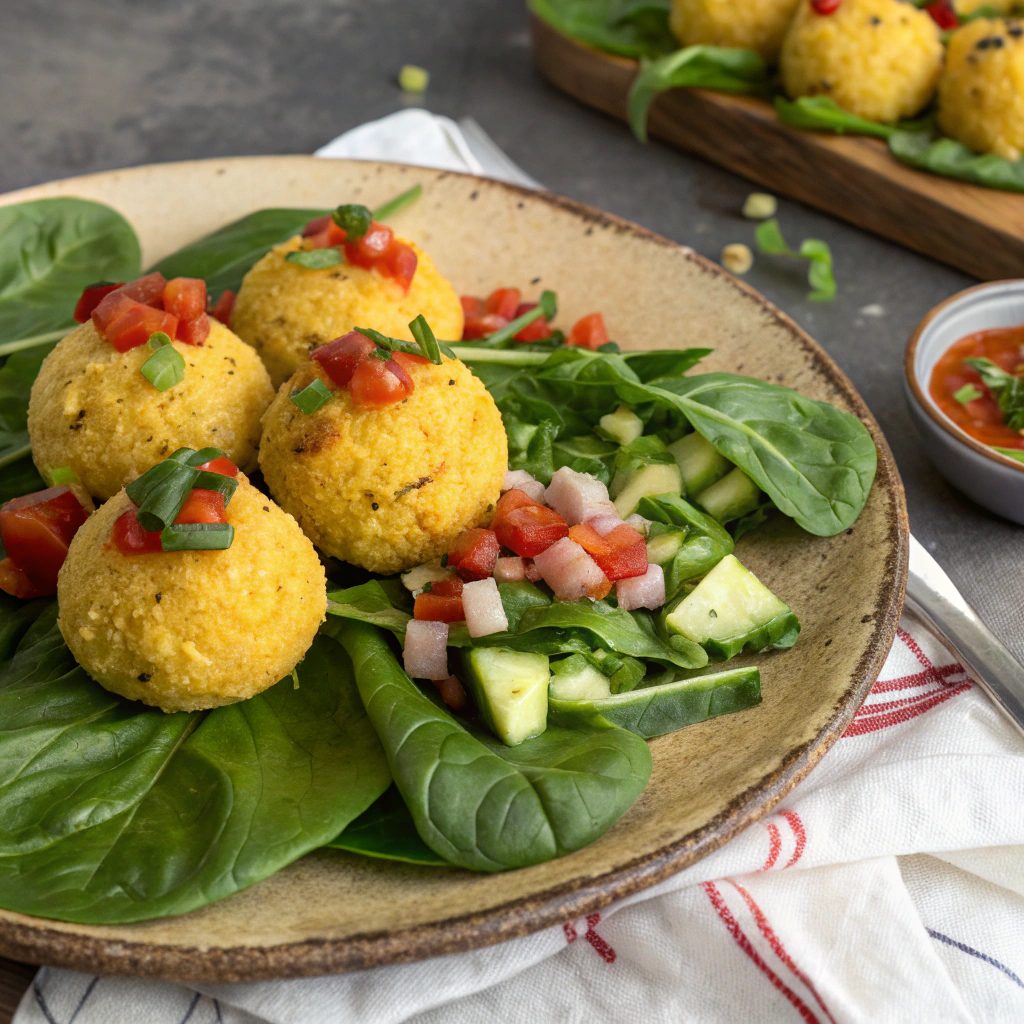 Wholesome Fasting Menu: Polenta Cheese Balls and Vegetables